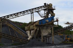 Крупный материал сначала предварительно просеивается через вибрационный питатель, затем камень и шлаки толщиной 0-150 мм отделяются колосниковыми решетками и затем доставляются в независимую установку просеивания. Этот процесс может обеспечить достаточную чистоту конечных заполнителей. Крупный материал размером более 150 мм будет отправлен в щековую дробилку через вибрационный питатель для первичного дробления, затем щебень будет доставлен в конусную дробилку среднего дробления для вторичного дробления. После этого главный ленточный конвейер доставит щебень из конусной дробилки на 2 вибрационных грохота для просеивания и проверки, камни толщиной более 31,5 мм будут возвращены в буферный бункер, а затем другой вибрационный питатель подаст их в две конусные дробилки тонкой очистки для третичного дробления. Главный ленточный конвейер отправляет мелкий и средний щебень на вибрационный грохот для просеивания и проверки. Камень толщиной 0-31,5 мм будет отправлен на два других вибрационных грохота для классификации и просеивания. Наконец, клиент получит окончательную классифицированную готовую продукцию.